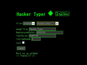 サイトにアクセスしてLinuxカーネルなどプログラムの種類を選び、背景色や文字色を設定して「Hack」をクリック。あとは適当にキーボードをたたけば、あたかも高速タイピングしているかのようにずらずらっとコードが出てきます。何も知らない人に見せれば、「こいつ……デキる!」と思われるかも。