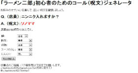 スターバックスと並んでオーダーが難解だといううわさのラーメン屋「ラーメン二郎」。呪文のようなオーダーをすらすら言える初心者向けジェネレータが誕生しました。