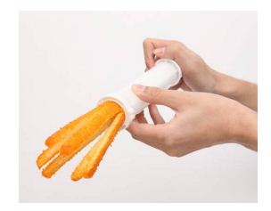 スライサーには安全なプラスチック製の刃を使用しており、本体を分解して洗うことが可能という。やおきんと協力して、Twitterでうまい棒スティックを使ったレシピコンテストを開催したり、コアなファン向けの発売記念イベントを実施する予定。