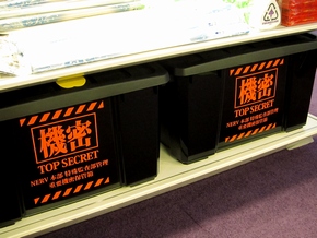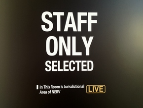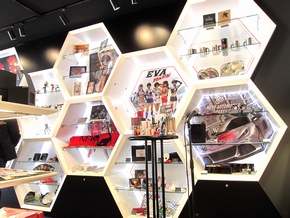ストック用のボックスからスタッフ用の入口まで、細かいところまでエヴァの世界観で作られている