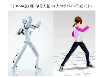人形のような入力装置を使って、コンピュータ上の3Dモデルを操作できる「QUMA」技術を活用したデバイスの発売が決定した。2012年5月にセルシスが販売開始する。価格は6万円前後の予定。
