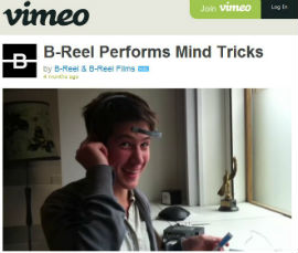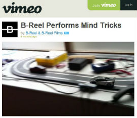 スロットカーは、スロット(溝)のついたコースに模型自動車を走らせる玩具。B-Reelは脳波センサー付きヘッドセット「Mindwave」とスロットカーレースゲーム「Scalextric」、PC、Arduinoを接続し、特別なアプリを開発しました。ヘッドセットをつけて念じるとスロットカーが走り出し、コースをびゅんびゅんと回ります。