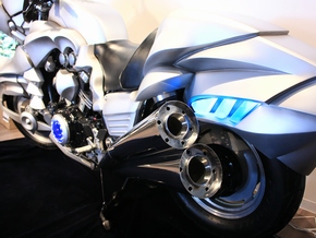 車体は原作の設定と同じくヤマハ発動機のV-MAXをベースに改造した。ナンバープレートを取得していないため公道を走ることはできないが、実際にエンジンをかけて動かすことはできる。