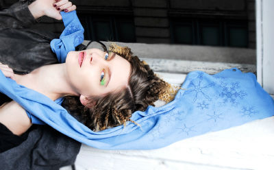 一見したところシンプルできれいな青色のマフラー。ところが気温が下がると雪の結晶の模様が現れてくる――そんな「JACK FROST SCARF」がすてきです。