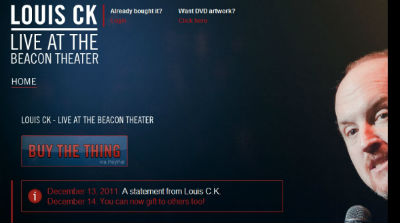 彼はこの実験で、お笑いライブ2公演のビデオを5ドルの低価格で販売した。購入手順はできるだけ簡単になるよう気を配り、コピープロテクトは一切かけなかった。