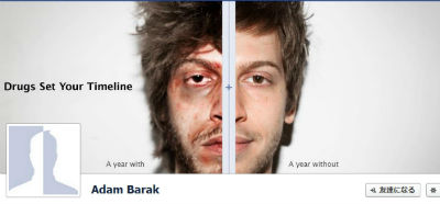 Facebookのタイムラインを活用して、「麻薬中毒者の荒廃した生活」と「普通の若者の楽しい暮らし」を対比して見せるキャンペーンが展開。これはうまい。