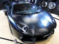 HYPER FORGEDブースではランボルギーニの最新フラッグシップモデル「アヴェンタドール」が展示されていた。やっぱりマットブラックはカッコいい
