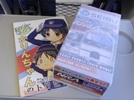 ちなみにこのツアーでは、西武秩父駅までノンストップだ。ただし臨時運行列車らしく、途中途中で運転停車(駅に停車するがドアは開かないこと)をしながら進む。社内には「けいおん!」「俺の妹がこんなに可愛いわけがない」から「めぞん一刻」、果ては「アルプスの少女ハイジ」まで、年代層ジャンル問わず幅広いアニソンがずーーーーっと流されていた。客層は、わたしのようなアラフォーと思われるお1人様乗車と、10代後半〜20代および30代と思われる数人のグループでの参加(レイヤーさんたち含む)という感じではっきりと分かれていた気がする。