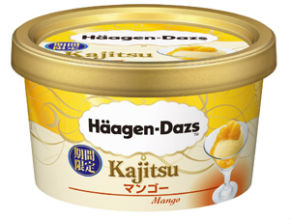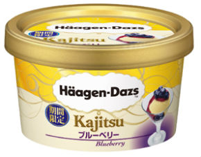 アイスクリームの上に果肉入りのフルーツソースをかけた商品。ミルクアイスにブルーベリーソースをかけた「Kajitsuブルーベリー」と、マンゴーソースをかけた「Kajitsuマンゴー」の2種を投入する。希望小売価格は284円で、コンビニおよびハーゲンダッツショップで販売する。