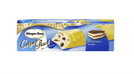 また4月23日には、クレープ生地でアイスを包んだクレープグラッセの第3弾「ティラミス」も発売する。マスカルポーネアイスにコーヒーソースとココアスポンジを合わせ、クレープ生地で包んだ。希望小売価格は294円で、スーパー、コンビニ、ハーゲンダッツショップで取り扱う。