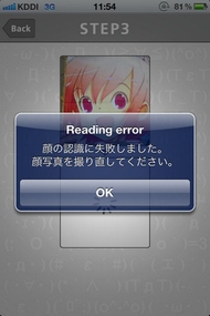 同僚に試してもらったところ、キリッとした顔はキリッとした顔文字「( `・ω・´)」に、はち切れんばかりの笑顔は手まで付いた笑顔な顔文字「ヽ(≧∀≦)ノ」になった。ITちゃんのイラストでも試してみたところ、「顔の認識に失敗しました。顔写真を撮り直してください。」と表示されてしまった。うーん、イラストでは難しいようだ。
