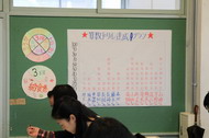 会場となった教室。黒板に書かれた文字も学校の雰囲気たっぷり