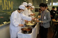 会場となった東京・世田谷区にある「世田谷ものづくり学校」は、2004年3月に廃校となった旧池尻中学校を利用して、さまざまな分野のクリエーターに教室を開放しているワーキングスペース。もちろん、当時のままに黒板、机、いすが用意されている部屋もある。オトナの給食パーティはこの教室を使用して開催された。