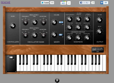 「WebSynth」はWeb Audio APIとJavaScriptで作られたWebアプリ。ブラウザ上でシンセサイザーが弾ける。