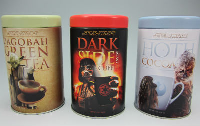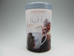 まずはホスのココア。ホスと言えば、反乱同盟軍が基地を置いた雪の惑星。ココアの入った缶にはチューバッカが湯気の立つマグカップを持っている絵が描かれている。毛がふっさふさのチューバッカでも温かいココアを飲みたくなるほど寒いとは、雪の惑星恐るべし。