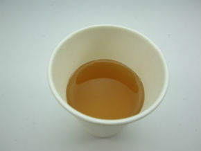 お次はヨーダの緑茶。ヨーダが隠遁生活を送る惑星ダゴバのジャングルの奥深くで取れた「銀河で最もおいしい緑茶」だ。見た目は普通の緑茶っぽい。渋みはそれほど強くなく、味も香りも日本茶というより中国茶のような感じがする。原材料欄を見ると、抹茶、グリーンプーアル、白牡丹(白茶)と書いてある。