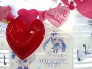2店舗目は札幌南5条東店。こちらでは歌を歌うミクさんのイラストが出迎えてくれた。店内はバレンタインに向けた飾り付けも行われており、窓のミクさんが透けて店内のハートと並んでいるように見える。まるでバレンタイン仕様のミクさんのようで胸熱だ。また撮影時はぷよぷよまんが販売されており、ミクさんとぷよぷよという謎のコラボも堪能することができた(ぷよぷよまんは1月23日から個数限定で販売されたもので、売り切れている可能性もあります)。