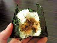 実際に食べてみると、おにぎりは味噌が濃いめの味付けで、海苔も味付海苔なので少し塩辛いかなという印象。おいしかったのだが、はちゅねミクのおにぎりという点ではねぎの味があまり主張していなかったのが少し残念だった。