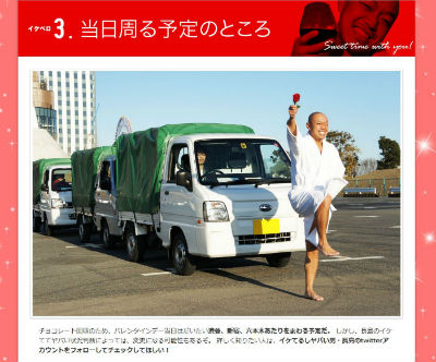 「バレンタインデーになるとトラックの荷台いっぱいにチョコレートが届いた」というアイドルにありがちな都市伝説が現実になることを見越して、軽トラ3台を用意した。目標はチョコ7000個。ちなみにかかった費用はなんと47万4000円。かなりの金額だが、「それ以上の回収ができることがわかっている投資」だという。さすがイケててヤバい男は違うぜ……。