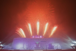 初日のオープニングショーでは花火が打ち上げられた(写真提供:タカラトミー)