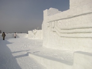 で、でかい……。旭川冬まつりの会場に着いた筆者は、自分の目を疑った。前日にさっぽろ雪まつりの取材をしていたときも大雪像の大きさに驚いたのだが、レベルが違いすぎる。