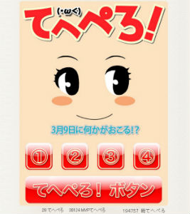 てへぺろボタンは2月末に公開されたが、アクセス殺到のため一時停止されていた。作成したBlendyさんは「爆発的人気を目指して作ったのはいいものの、いっけね〜サーバーが爆発してもうた〜、てへぺろ(・ω<)☆」とニコ動でコメント。現在はサブサーバで復活している。