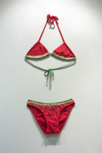 「Watermelon Bikini」(スイカビキニ)というこのビキニ型水着、トップスもボトムもスイカの模様になっています。スイカ柄なので何カップでも堂々とスイカップを名乗れるというわけです。