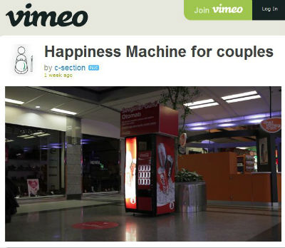 イスタンブールの広告代理店のプロモーション企画で、カメラを組み込んだ、遠隔操作できるコカ・コーラの自販機をショッピングモールに設置しました。バレンタインデー限定のカップル専用自販機です。この自販機から飲み物をゲットする方法はただ1つ。本当にカップルだと証明すること。