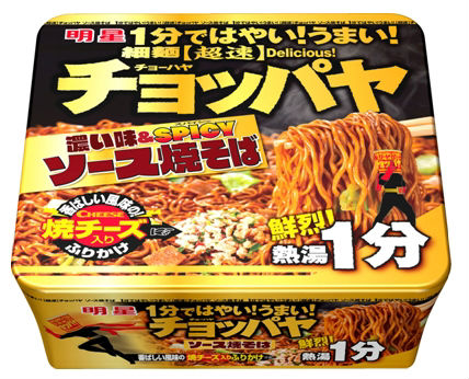 調理時間の短縮をキーコンセプトとした「明星チョッパヤ」シリーズの新商品。1分で湯戻しできる細麺にソースを練り込んだ。ソースは中濃ソースをベースにウスターソースとたまりソースをブレンドし、8種のフルーツペーストの甘みとトマトペーストの酸味を加えたという。かやくはキャベツとチャーシューチップ。ふりかけには焼きチーズチップを加えた。