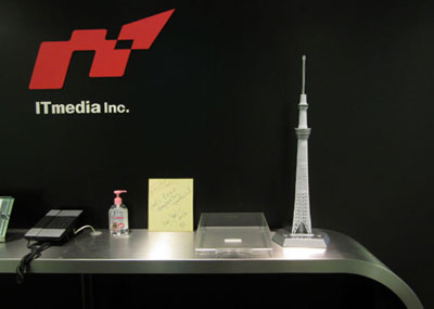 アイティメディアの受付には、誰かが忘年会のビンゴで当てたスカイツリーのプラモが飾ってある。ここにエイリアンチョップスティックを飾ってみた。遠目には分かりづらいが、近寄った人間を驚かせる効果があるだろう。机に飾れば、エイリアンに見張られているような気分になって仕事が捗る……かもしれない。