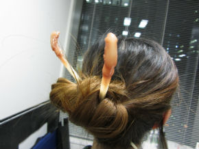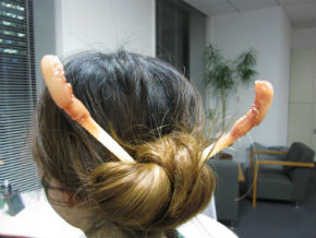 紳士が胸ポケットなら、淑女はかんざし代わりに。編集部の女子に、お団子髪にエイリアンチョップスティックを挿してもらったところ、実にはまった。これで着物を着れば、和と宇宙のコラボレーションで世界中の紳士から熱い視線を浴びることだろう。