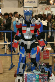 「トランスフォーマー」の着ぐるみ(左)と「化物語」の戦場ヶ原ひたぎ(中央)と「シュタインズゲート」の鳳凰院凶真と椎名まゆり