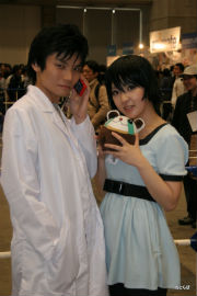 イタリアからアニメフェアとアニメコンテンツエキスポのために来日したメーテルとキャプテンハーロック(左)、惣流・アスカ・ラングレーに扮したスペインからの留学生。来日して5カ月目。スペインでもイベントでコスプレをしていたとか
