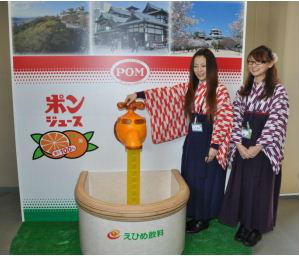 ちなみに、実際にジュースが出る「ポンジュース蛇口」も、毎月第3日曜日に松山空港の2階出発ロビーに設置されており、無料で試飲できる。