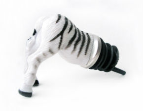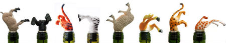 「animal wine stopper」は、まるでトラやシマウマがワインの瓶に頭を突っ込んで抜けなくなったみたいです。