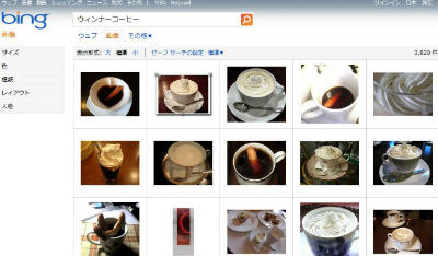 ちなみにGoogleの検索技術を使っているYahoo!でも似た検索結果になり、MicrosoftのBingの検索結果の上位は、本来的な意味でのウィンナーコーヒーがGoogleよりも多めになっている。