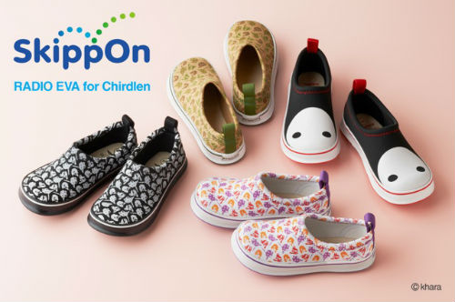 また「SkippOn」とコラボした子ども靴も(3465円)も発売した。靴の先端にデフォルメされた使徒の顔を描いた「shito black」、エヴァのモノグラム模様「eva monogram black」「eva monogram khaki」「eva monogram white」の4種で、サイズは13〜18センチ。
