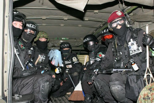 そしてついに彼らがやってきた。「自宅警備隊 N.E.E.T」が陸上自衛隊のブースを急襲。無謀にも陸上自衛隊で最も精強と言われる習志野の第一空挺団と対峙する自宅警備隊宅外派遣隊員たち。それまでにこやかに接していた空挺団員が、彼らをみるや目付きがガラリと変わり整列の基本を叩き込む。