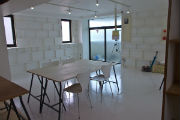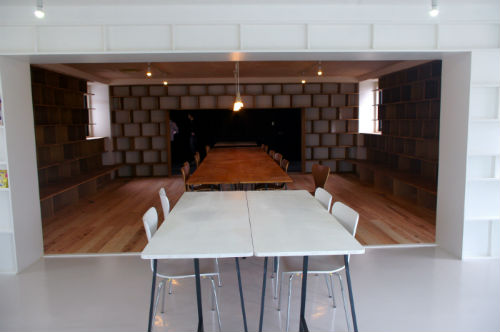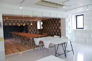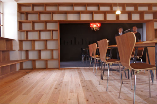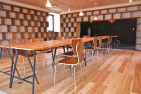 素材にもこだわっている。例えば中央の部屋は床に岡山県西粟倉村産のヒノキを使っている。吸湿性に優れているのが特徴。何となく暖かく、心地よく感じられた。空間の利用も上手である。テーブルは脚と接合されておらず、テーブル板を外して収納できる。すべての部屋のテーブルを撤去して何もない空間にできるので、イベントなども定期的に行う場所にしていくそうだ。