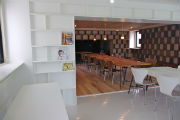 ほかには白と黒の部屋がある。白い部屋は壁、天井、家具のすべてが白いだけでなく、照明もほかより明るくなっている。雑誌を立てかけて“魅せる”ための部屋で、本棚は奥行きが5センチほどと浅く、基本的に雑誌の表紙で壁一面を飾ることになる。co-ba入居者の属性とマッチした雑誌が並ぶそうだ。出版社からの献本だけではなく、新刊雑誌も随時入れていく。変化が激しい部屋になる。