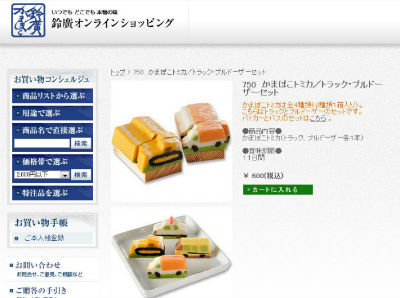 タカラトミーのミニカー「トミカ」が、かまぼこになって売られている。小さな子どもが喜びそうだ。