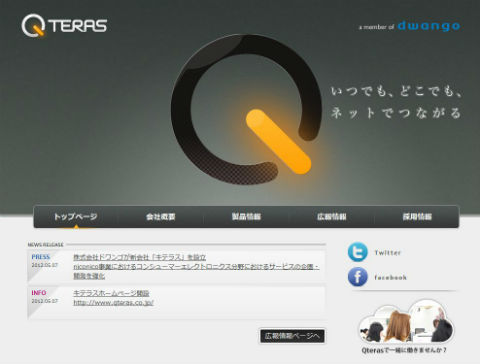 ドワンゴは5月7日、niconico事業の家電向けのサービスを開発する新会社「キテラス」の設立を発表した。
