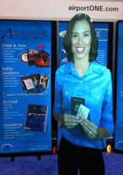 この「AVATAR(Airport Virtual Assistants)」技術を提供するAirus Mediaのデモ映像では、女性の映像がゲート案内などをしている様子が見られる。