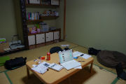 ギークハウス新丸子は一軒家の1階のみを使っていて、2階は普通の賃貸。1階は部屋が5つ(広さは8畳以上)あり、うち2部屋は寝室。寝室に入ってみると、懐かしの2段ベッドが並んでおり、林間学校を思い出す。4人部屋と6人部屋とに分かれていて、特に6人部屋はTHE・男というにおいが漂っていた。体育系部活動の部室を思い出すにおいかも。残りは和室、居間、キッチンとつながったフローリングの部屋で、皆は主に居間と和室に集まってPCをいじっている。食事は居間に集まって取ることが多い。