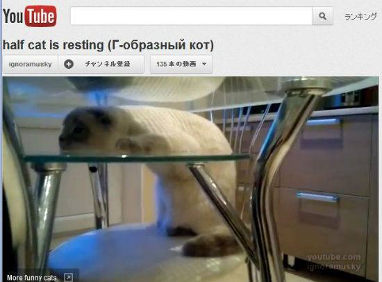 動画のなかで、ネコはガラステーブルの天板と、その下の棚の間にはさまっています。Lの字をひっくり返したような格好で、あまり楽な姿勢には見えませんが、ネコはまったりとした様子。意外と楽なのかもしれません。