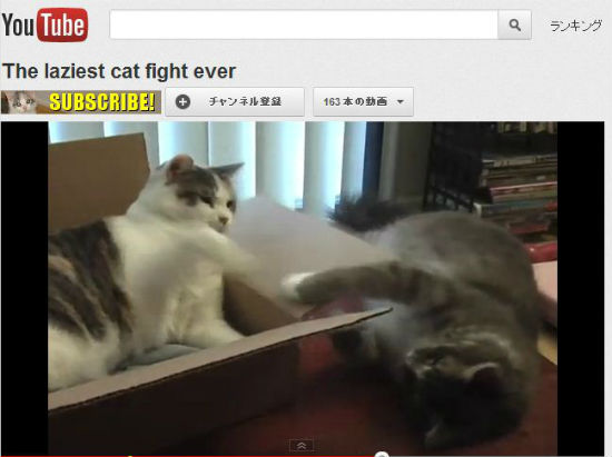 ネコのケンカは激しいもの、というイメージがありますが、だらっとしたネコのケンカの動画がYouTubeに上がっています。