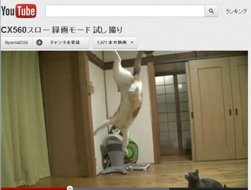動画はジャンプするネコたちを(ソニーの)CX560のスロー録画モードで撮影したもの。ネコがジャンプしてしなやかに着地する様子をじっくりと見ることができます。見ているうちに映画「マトリックス」みたいに思えてくるのですが、同じことを考えた人がいたようで、「マトリックスだ」というコメントが投稿されていました。
