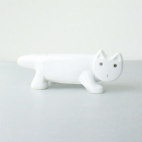 スウェーデンの陶芸家リサ・ラーソンさんのデザインのしま模様のネコと、白ネコ、黒ネコの3種あり、価格はそれぞれ1万5750円。