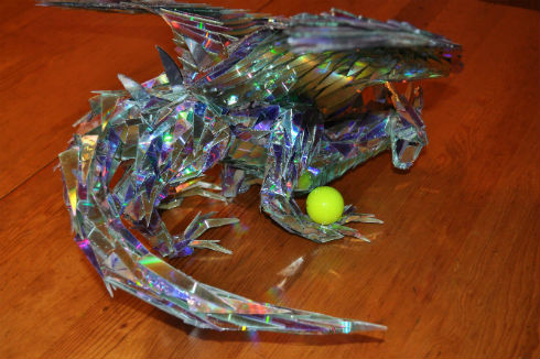 CDの破片を組み合わせて作られたドラゴンがすごいと話題に