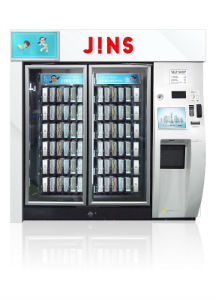 JINS PCのヒットで新規顧客が急増したことから店舗が混雑しており、待ち時間を解消するため自販機を導入することにしたという。
